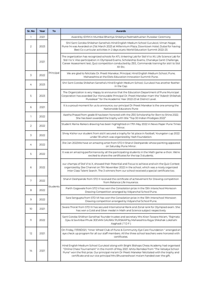 Shri Sant Goroba Shikshan Sanstha’s Hind English Medium School Gurukool, Viman Nagar,