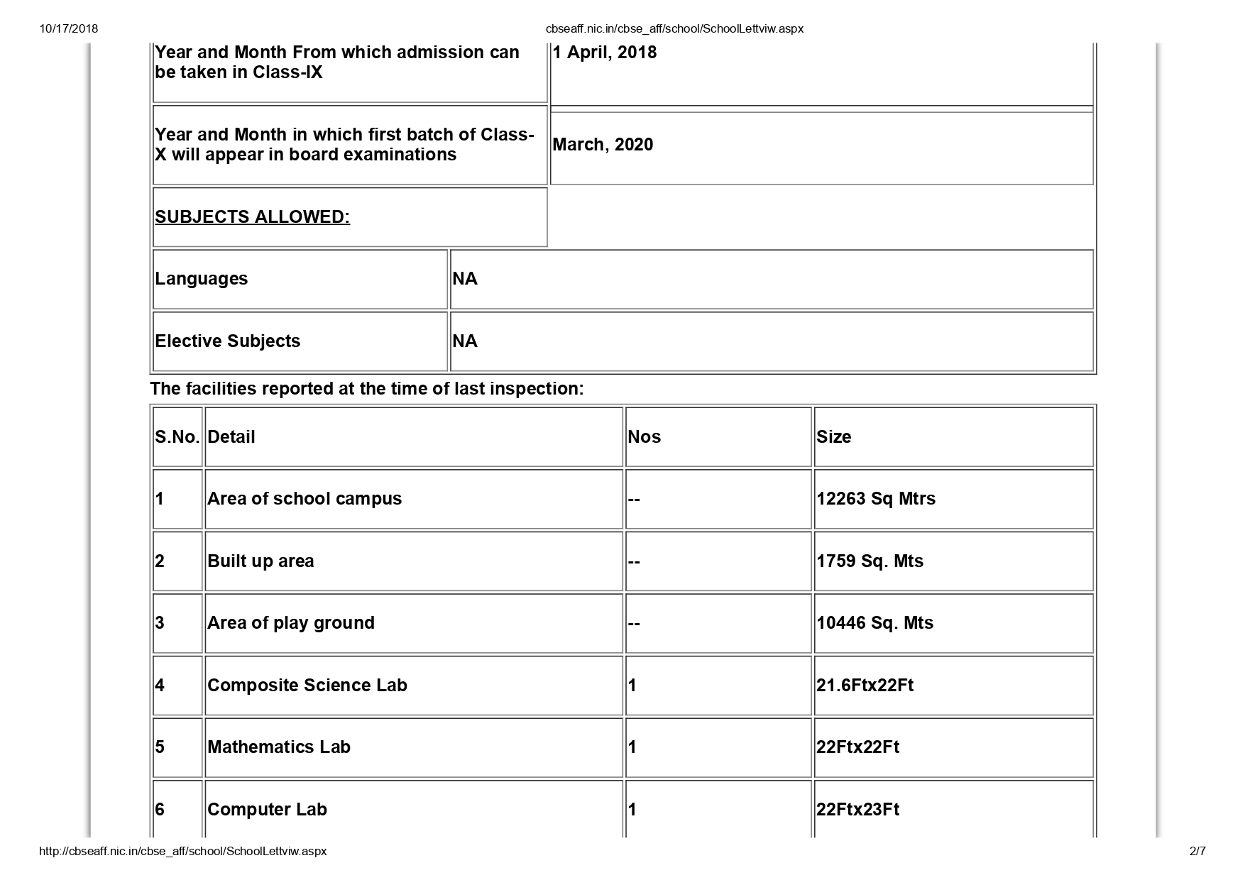 No. and size of the classrooms in sq mts - 500 sq’ft